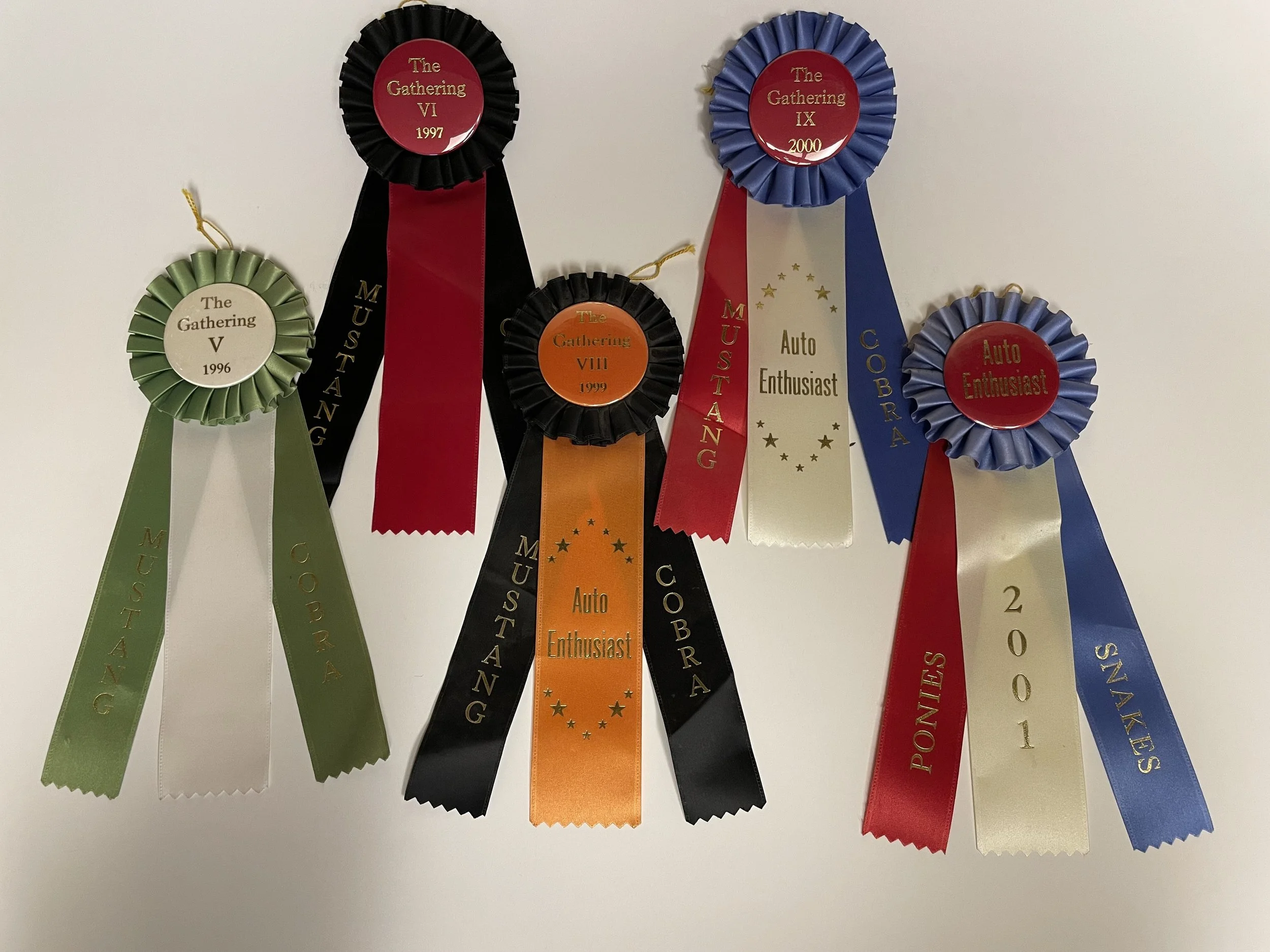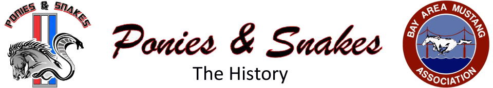 Before the name “Ponies & Snakes” was coined by the late BAMA member Don Olson, the club organized nine annual shows under the banner “The Gathering.” This was an informal display for Mustangs and Cobras at Danville Livery. It was co-hosted with a car-themed business which has been known variously as The Auto Enthusiast, Auto Affair and later The Paddock, which was in the shopping center and sponsored the commemorative ribbons which were awarded to all participants. The Gathering had a strong emphasis on the casual approach: there was limited organized parking and the event typically wrapped up around 1:00 pm.